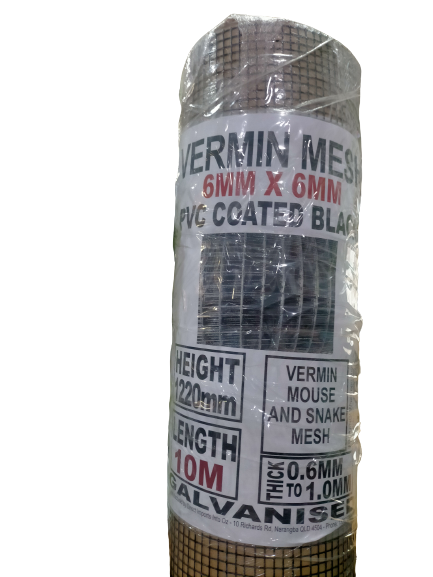Galvanized Wire Vermin Mesh DELIVERED Fencing 1220mm x 10m - 6mm x 6mm Squares BLACK